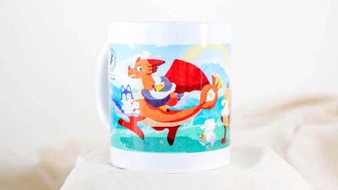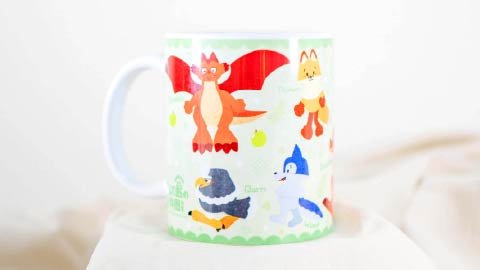 ギルバ島のなかまたちをあしらった賑やかな印象のマグカップです。