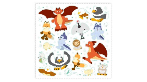ギルバ島のなかまたちをあしらった賑やかな印象の眼鏡・画面クリーナーです。